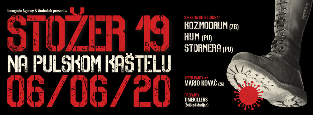 INCOGNITO AGENCY & AUDIOLAB PRESENTS: 06.06.2020. / Subota / 21h-05h / Kaštel, Pula STOŽER 19 NA PULSKOM KAŠTELU UZ 3 BENDA KOJA SU KLJUČNA! 🙂 – Kozmodrum (ZG) – Stormera ( PU) – HÛM : Fusion jam Session by 3 glazbena virtuoza: Miroslav Tovirac ( bass) Alen Spada (gitara) & Marco Quarantotto ( bubanj) +dj-evi -AFTER PARTY w DJ MARIO