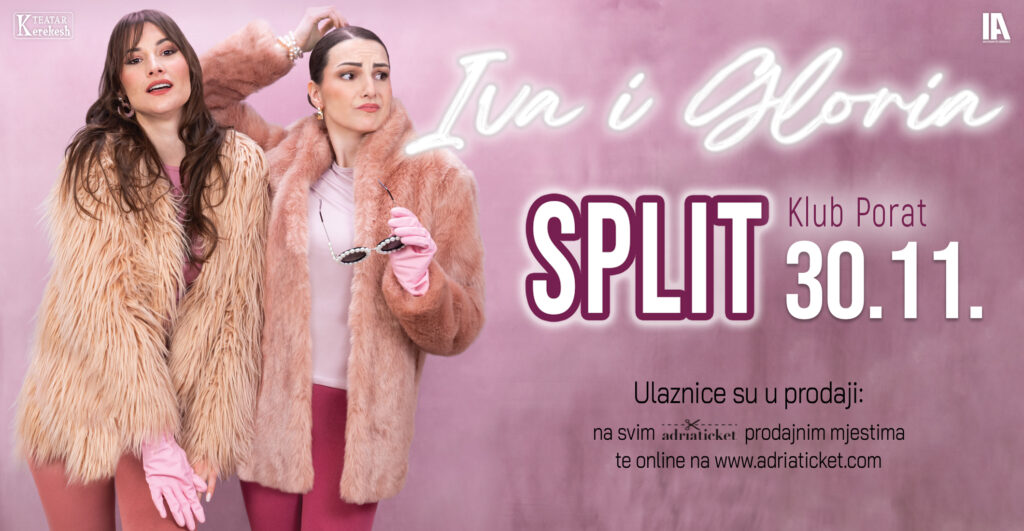 Read MoreINCOGNITO AGENCY PRESENTS: IVA I GLORIA KLUB PORAT30.11.2025. Vrata: 19:30hStart : 20:00h Hit predstava u režiji Jana Kerekeša stiže u Split 30. studenog! Ulaznice: online na https://bit.ly/IvaiGloria_Split i na svim Adriaticket fizičkim prodajnim mjestima u Hrvatskoj O ČEMU SE RADIIva i Gloria su dvije prijateljice, majke i čistačice koje su nekoliko puta pokušale postat glumice. Rad u kazalištu, pa makar i u