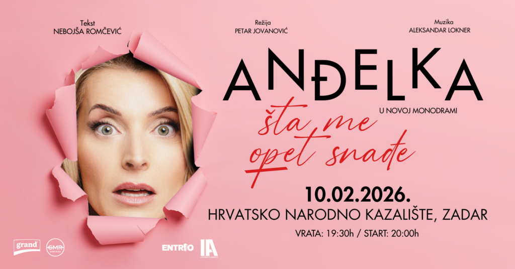 INCOGNITO AGENCY PRESENTS:ANĐELKA – “ŠTA ME OPET SNAĐE”10.2.2026.HNK ZADAR Ulaz: 19:30hStart: 20:00h Ulaznice: https://www.entrio.hr/…/andjelka-sta-me-opet-snadje-u… i sva Entrio fizička prodajna mjesta (www.entrio.hr/outlets) O predstavi:Anđelka Stević Žugić, jedna je od najomiljenijih glumica regije koju najbolje znamo iz serije “Andrija i Anđelka” te je igrala u izuzetno uspješnim serijskim i filmskim projektima, među kojima su „Ne diraj mi mamu”, “Šetnja s lavom”, “Jedini izlaz”, “Nebesa”,